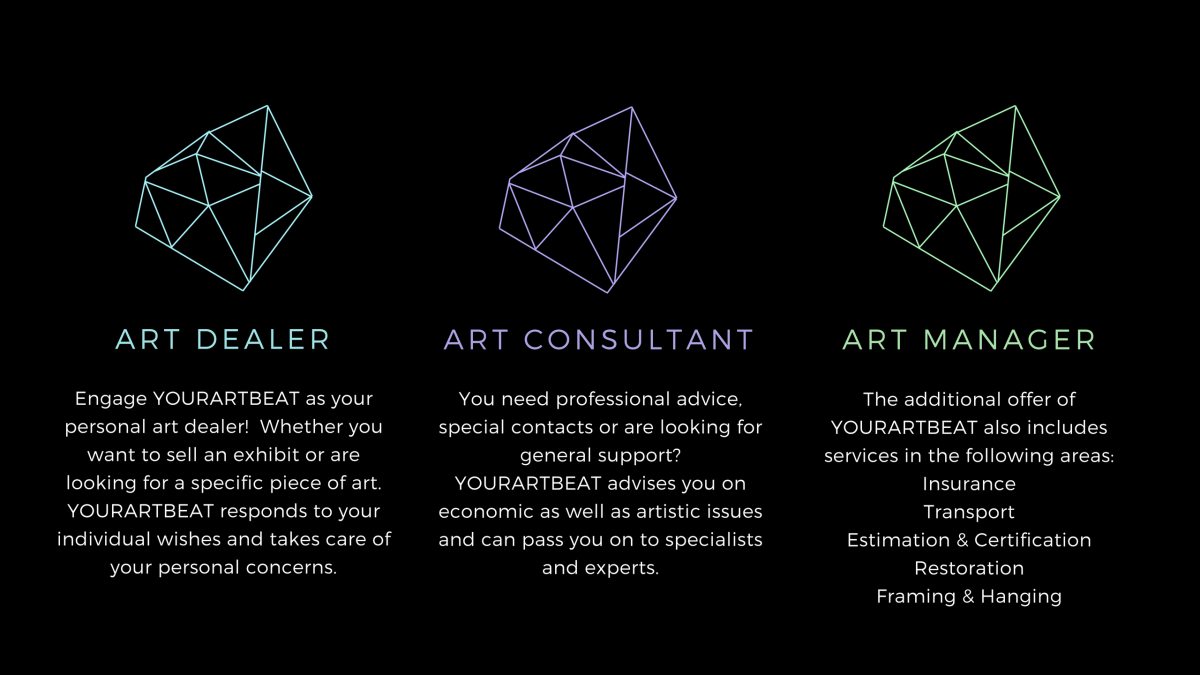 Furthermore, YOURARTBEATs online shop, the YOUR ART BEAT MARKET, offers service packages that are more oriented towards the art trade and the artwork itself. Here, YOUR ART BEAT can assume the following functions and tasks: